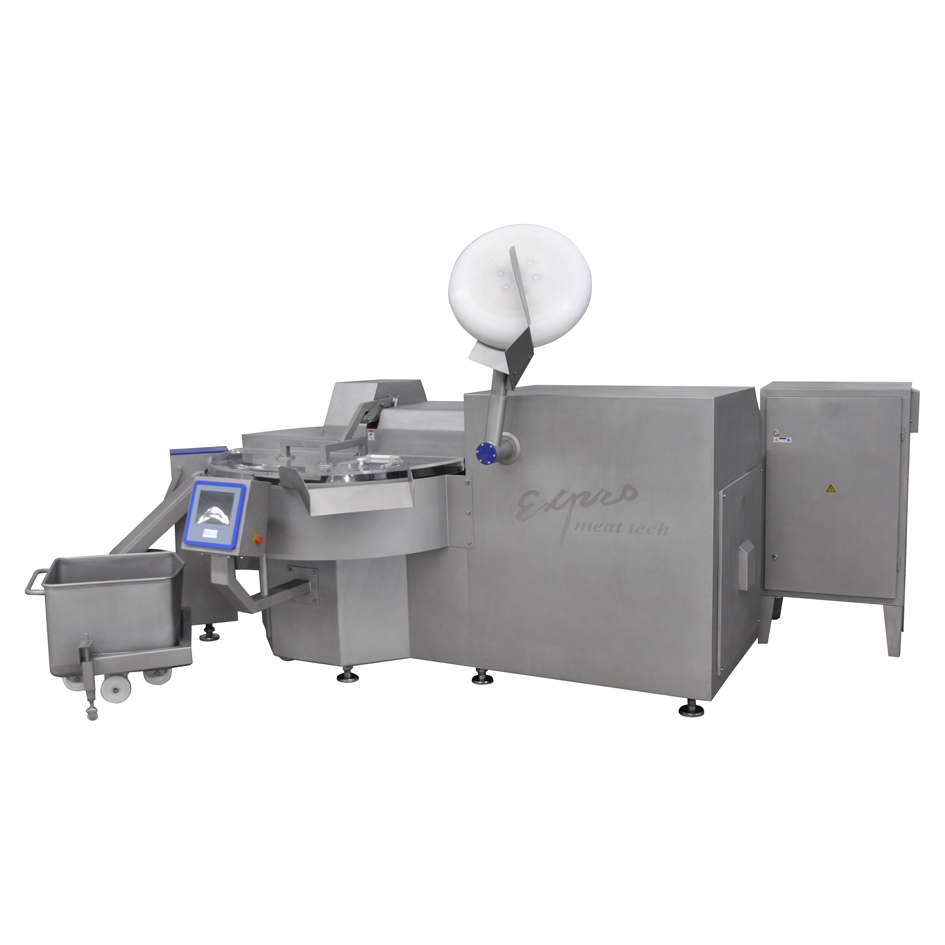 BZBJ-330B 斩拌机适用于各种肉类和果蔬的斩切、搅拌、乳化加工。可将原料斩切成不同要求的颗粒和细度,并将其与添加剂搅拌均匀。带有液压装、卸料及前、后盖翻转装置,并装有安全保护和温度显示。主刀轴采用变频调速,PLC控制。也可根据用户要求改用普通电器控制。